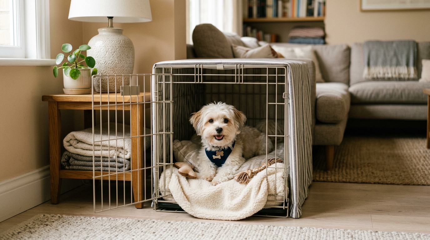 ‘Georgie’s Happy Place’ emphasizes transforming the crate into a secure, positive sanctuary for your small dog. It’s about making the crate a place where your pet feels safe, comfortable, and genuinely happy, not just confined.